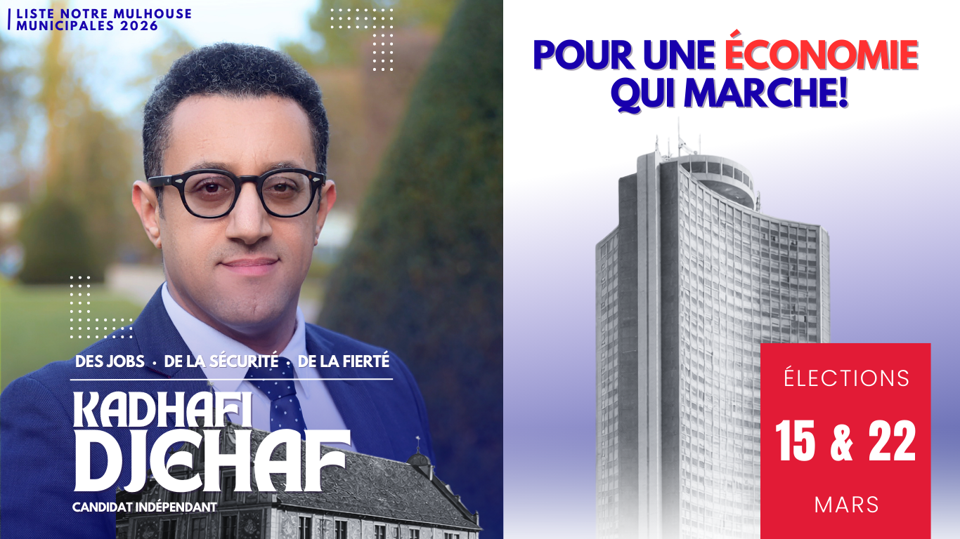 Kad, 42 ans, enfant de Mulhouse et père de deux enfants, se présente aux municipales de Mulhouse avec une liste citoyenne, indépendante et avec une ligne claire : rassembler et agir. Fils d’un immigré ayant travaillé à la DMC, il porte en lui l’héritage ouvrier et industriel de notre ville, la valeur du travail, l’effort, la dignité, et la fierté de celles et ceux qui ont bâti Mulhouse. Son engagement est guidé par une exigence républicaine : l’égalité des chances, l’ordre juste, et la solidarité concrète.